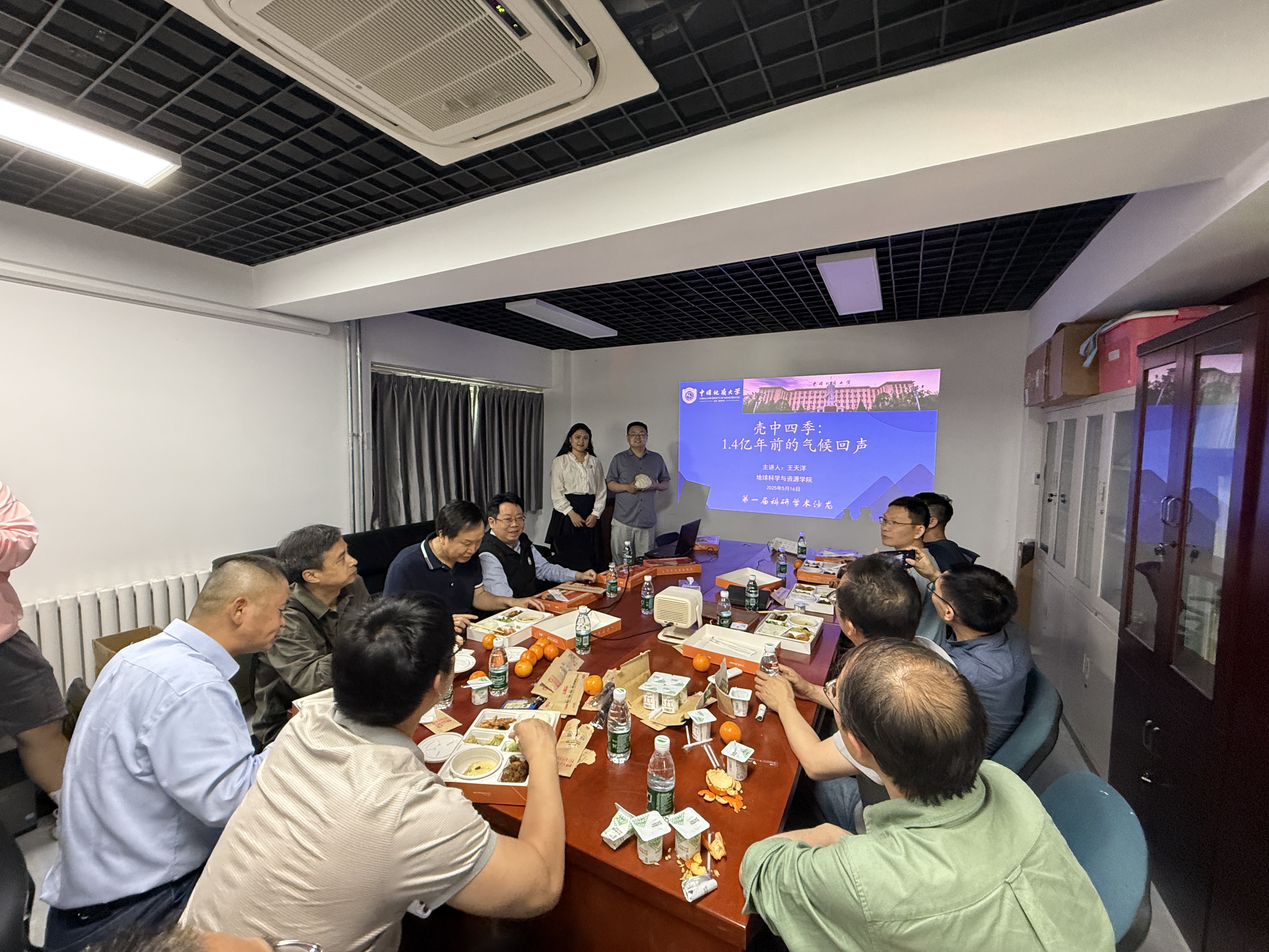 王天洋的报告题目为:壳中四季:1.4亿年前的气候回声。报告中指出:白垩纪代表着地质历史时期中一段动荡的温室气候时期,集中出现了一系列异常事件。其中,大洋缺氧事件一直是地球科学研究中的热点。早白垩世发生的Weissert事件,被认为是最早的白垩纪大洋缺氧事件。研究以非洲马达加斯加北部马哈赞加盆地中发现的白垩纪双壳类化石为研究载体,首先通对所采集到的化石进行分析,确定其保存了原始的海水信息;在箭石方解石原位U-Pb年龄构建研究地层的年代学框架的基础上,进而通过稳定同位素以及团簇同位素古温标等方法确定Weissert事件发生时期的南半球季节性古海洋温度变化趋势。同时应用全球气候模型(HadCM3)模拟了不同CO₂浓度下的海表温度、海水δ18O值和盐度分布,验证了基于生物碳酸盐岩团簇同位素温度计所获取数据的可靠性。结果显示在Weissert事件全球降温时期,牡蛎化石记录的南半球中纬度地区冬季海水温度比夏季低10-15℃,这一数据与现今同纬度地区季节性海水温度变化幅度相似;海水δ18O值的波动表明,部分淡水可能以季节性冰川融水的形式注入海洋,类似现代格陵兰冰盖夏季消融的情景。这一研究帮助我们进一步提升对白垩纪古气候、古海洋等关键科学问题的认知,可成为运用地球系统科学对地质历史中的温室气候条件下各圈层(大气圈、水圈和生物圈)耦合研究的典范。