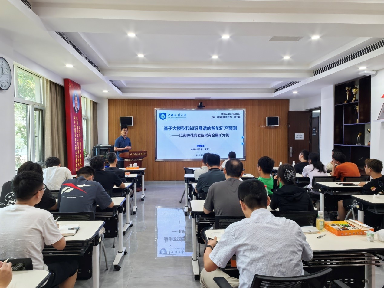 张振杰的报告题目是《基于大模型和知识图谱的智能矿产预测》。报告聚焦于当前矿产预测领域中长期存在的难题——如何构建具有良好可解释性的矿产预测模型。传统数据驱动方法尽管在精度上取得一定突破,但由于“黑箱”特性,往往难以为地质专家所理解和采纳,限制了其在工业找矿实践中的广泛应用。为破解这一瓶颈,研究提出了一种融合大语言模型(LLMs)与知识图谱(KG)的创新框架。具体而言,研究首先利用LLMs从地质文献中自动提取与特定矿床类型相关的文本信息,构建知识图谱以系统整合成矿知识,并通过挖掘该图谱筛选出具有地质意义的预测变量。在此基础上,引入S-A分形滤波与gcForest算法,构建可解释的KG-SA-GC预测模型,并将其应用于中国南岭地区稀有金属矿产的找矿预测。结果表明,该方法不仅有效识别出与稀有金属成矿密切相关的勘查地球化学指标,而且显著提升了模型的可解释性和预测准确性。该研究展示了人工智能与地质知识深度融合在智能找矿中的广阔应用前景,为未来多源异构地学知识的系统挖掘与集成预测提供了可行路径。
