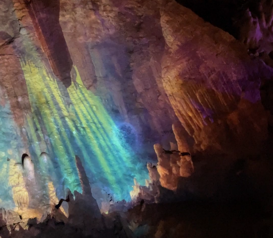 7月6日,实践团来到黑豆峪村最早开发的京东大溶洞景区,不仅沉浸式体验了将数字艺术、地质知识与天然溶洞景观充分融合的光影秀,还为景区的研学提供了新的研学旅行路线设计方案。