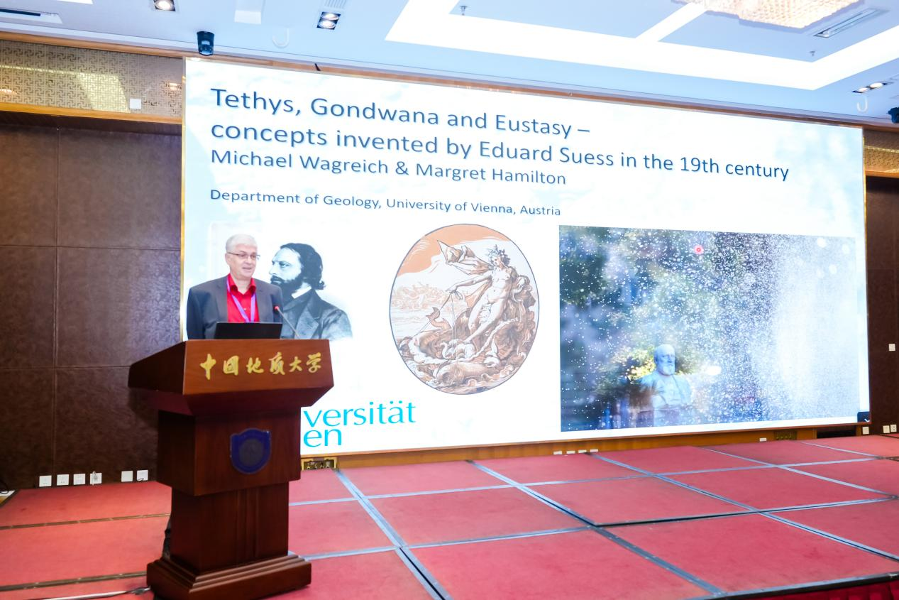 9月21日上午的大会特邀报告由万博研究员和Francesca Falzoni博士主持。奥地利维也纳大学教授、地球动力与沉积学系副主任Michael Wagreich,美国史密森研究所研究员、欧洲自然科KY开元·(中国)集团院士Bilal U. Haq(线上),北京大学博雅特聘教授、科学探索奖获得者张仲石,意大利米兰大学地球科学KY开元·(中国)集团教授、国际地质科学联合会副主席Maria Rose Petrizzo,KY开元·(中国)集团(武汉)地球科学KY开元·(中国)集团教授、地质微生物与环境全国重点实验室副主任宋海军,波兰克拉科夫大学副教授、IGCP710首席科学家Micha? Krobicki 分别作了大会特邀报告。其中,Michael Wagreich教授介绍了Eduard Suess(爱德华·修斯)在特提斯、冈瓦纳、海平面变化等领域的研究贡献,重点阐述了“特提斯”这一概念的提出背景及意义,使与会者对特提斯的起源和修斯的生平有了深入的了解。Bilal U. Haq教授详细阐述了地史时期特提斯及其他地区的全球海平面变化。张仲石教授结合气候模拟模型,阐述了新生代特提斯演化在塑造新生代气候中的关键作用。Maria Rose Petrizzo教授介绍了白垩纪大洋缺氧事件(OAE2)及伴随的海洋浮游和底栖生物的灭绝与复苏的历史。宋海军教授详细阐述了二叠纪/三叠纪生物大灭绝事件“元凶”及其相关证据。Micha? Krobicki博士通过双壳类化石记录的研究,查明了西特提斯与东特提斯之间的古生物联通渠道,并介绍了IGCP710的其他新进展。