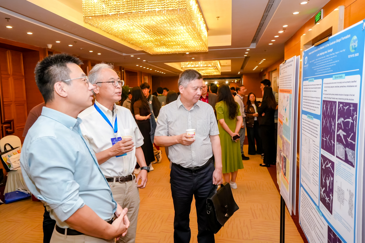 除了口头报告,会议还设置了13个展板,内容涵盖特提斯演化的生物-环境-气候响应和资源-能源效应等议题。茶歇期间,与会者围绕展板内容及其他共同关心的学术问题进行了广泛而深入的交流。