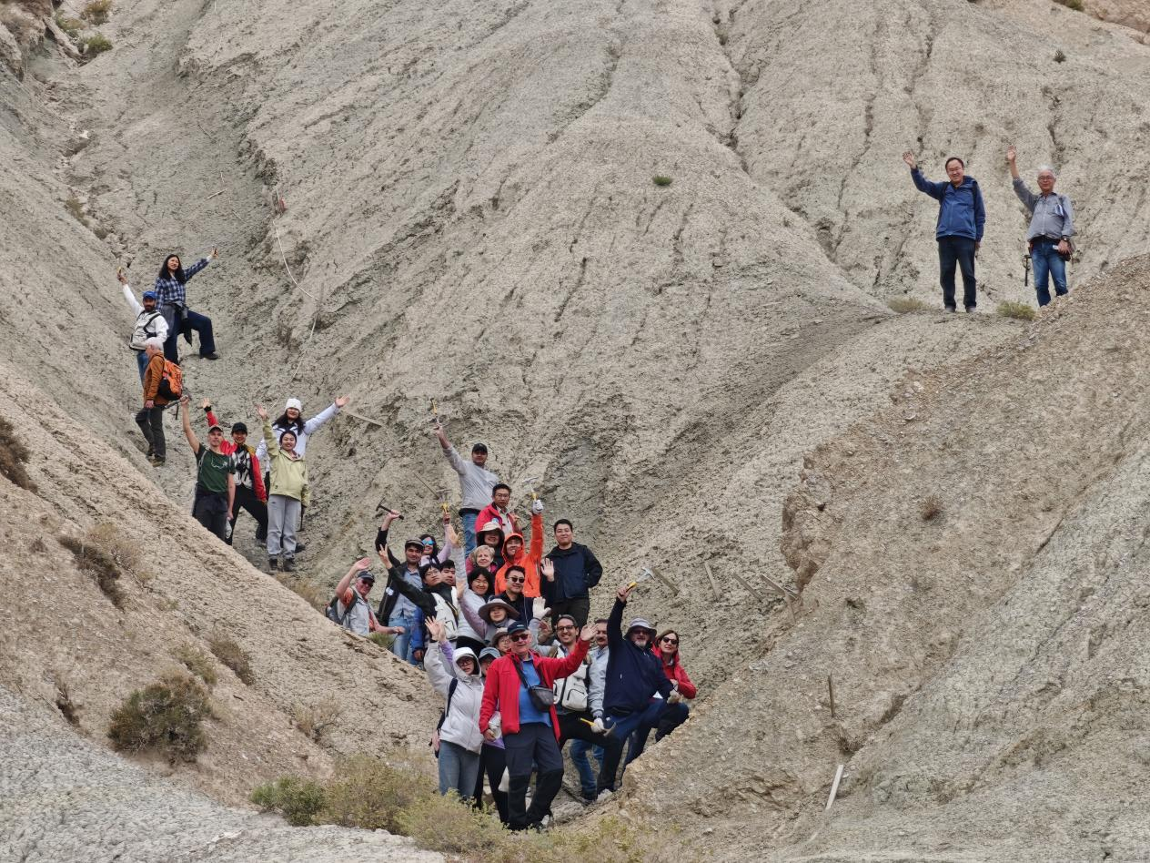 2025年9月25日至28日为会后考察。来自中国、美国、意大利、英国、奥地利、瑞典和巴基斯坦等国的37名与会者,对位于新疆克孜勒苏柯尔克孜自治州(克州)乌恰县及阿克陶县的塔里木盆地白垩纪-古近纪海相地层及相关地质遗迹进行了详细考察。与会者实地考察了克州乌恰县、阿克陶县的库孜贡苏、巴什布拉克、斯姆哈纳和奥依塔格等多个剖面,以及贝壳山、古新世-始新世极热事件(PETM)层、天山与昆仑山交汇处、奥依塔格冰川等地质景观。通过这次野外考察,与会学者们深入了解了塔里木盆地白垩纪-古近纪海相地层和波澜壮阔的特提斯演化历史。